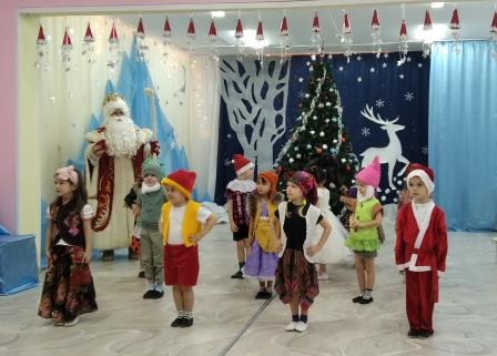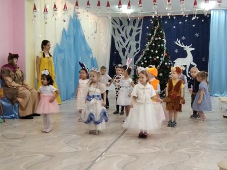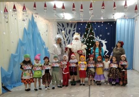 Новый Год - это самый волшебный, веселый и долгожданный праздник, которого дети ждут, веря в сказку и чудо. Красиво украшенный зал, нарядная елка, подарки, Дед Мороз со Снегурочкой и множество других сказочных персонажей встретили наших ребят, все погрузились в мир чудес, приключений, невероятных превращений и сюрпризов. Дошколята танцевали, пели песни, читали стихотворения, водили хороводы, с удовольствием участвовали в играх. Дети получили массу положительных эмоций и долгожданные подарки от Деда Мороза.