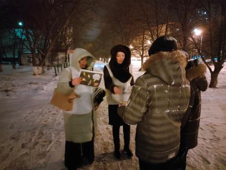 20 декабря  в Тольятти продолжилась реализация общественного проекта «Родители – ЗА безопасное детство!», инициированного городской администрацией и поддержанного родительской общественностью. Родительский актив МАОУ детского сада №49 «Веселые нотки» в количестве 4 человек с педагогами учреждения провели рейд по территории Центрального района (Маршрут Ц-5).